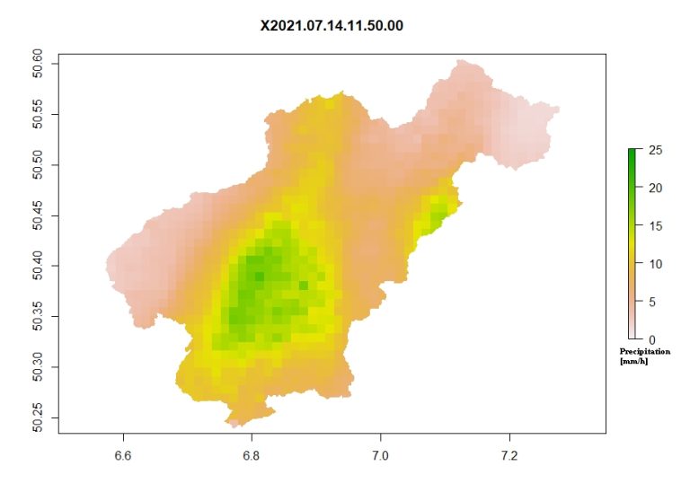 Between July 14th and 15th of 2021, an extreme event occurred in the Ahr catchment, affecting settlements and infrastructures along the river and over the floodplains. The event destroyed 3 gauges, interrupting the transfer of the data and the lost of important information.
